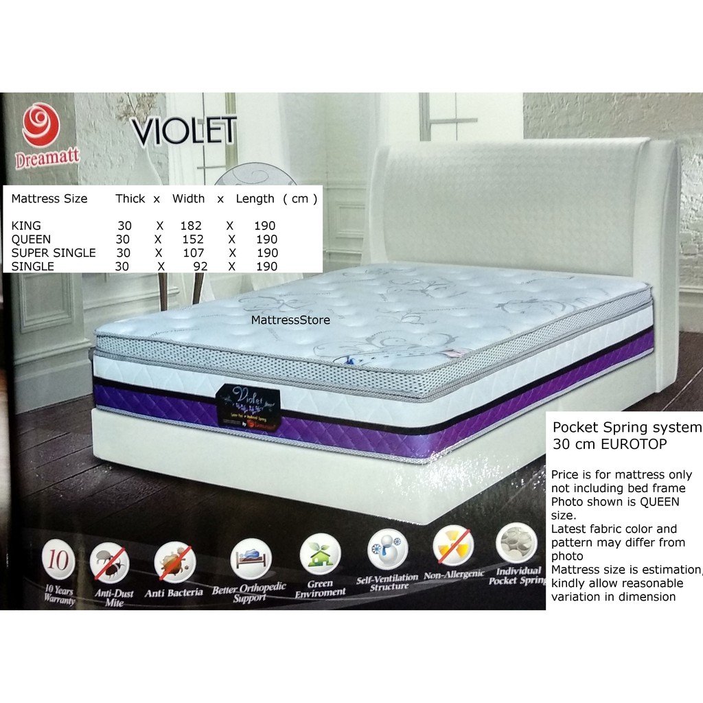 Dreamatt Violet Pocket Spring Mattress King Size No Bed Frame Shopee Malaysia